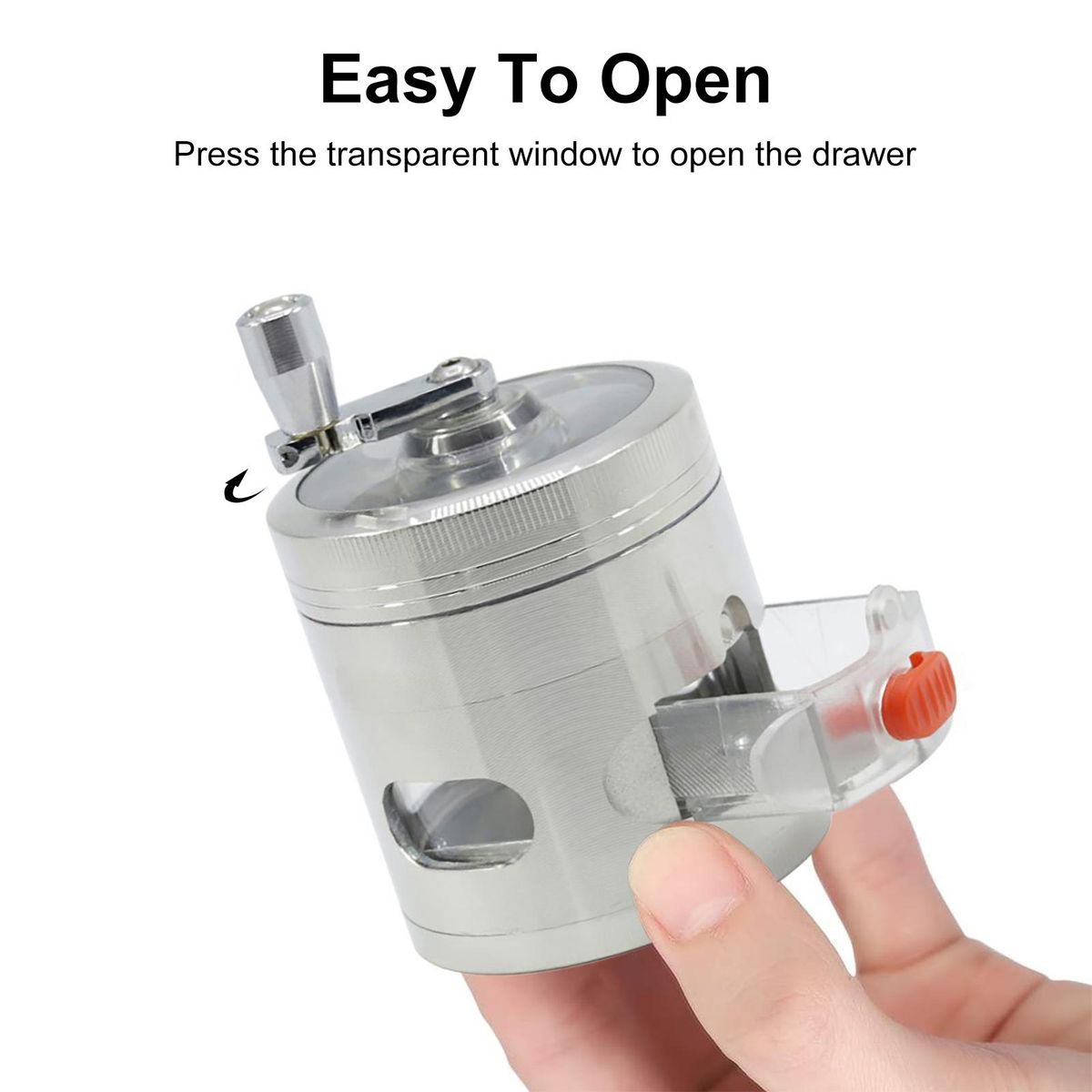 To use, simply turn the handle clockwise to secure it in place and prevent it from falling off. the transparent window on the drawer allows you to see its contents at a glance, while the press-to-open button ensures quick and easy access when needed.