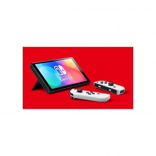 - Pick it up and play with the Joy-Con controllers attached. Nintendo Switch (OLED model) includes a vibrant 7-inch OLED screen with a slimmer bezel. The large screen's vivid colours and high contrast deliver a rich handheld and tabletop gaming experience, bringing games to life whether you're racing at top speed or squaring off against enemies.