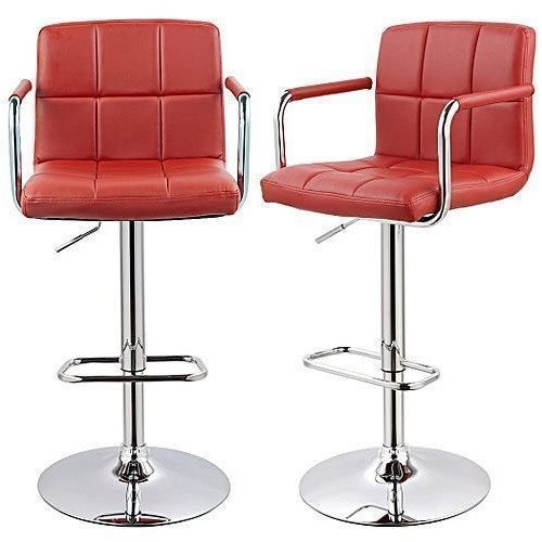 Swivel Adjustable Height Bar Stool - Set Of 2 - Red