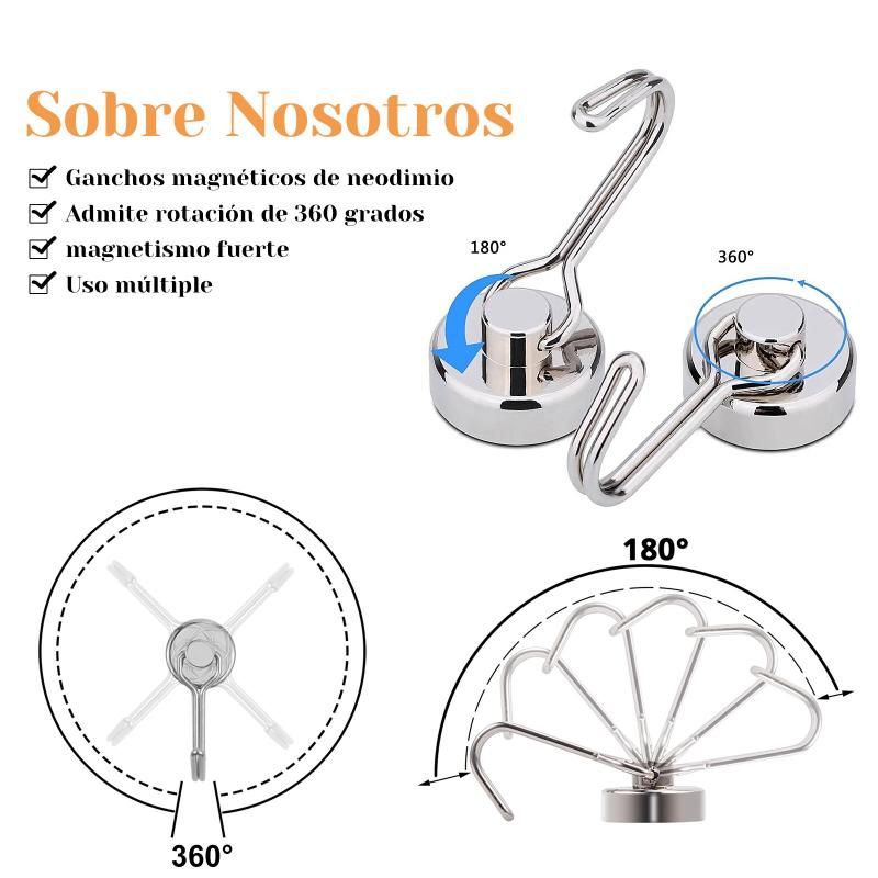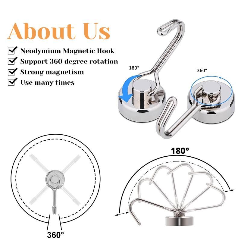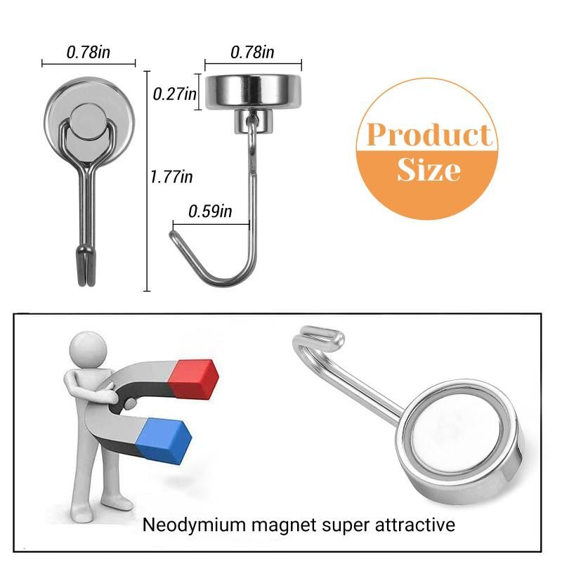 The hook swivels 180 degrees.Very flexible and convenient. Using these powerful magnetic hooks in your home, kitchen, workplace, office, garage, shed, gym, lockers, cruises and many more! Those magnet hangers are also perfect for Festival Decoration for hanging decoration lights. Beautiful hooks perfectly decorate home!