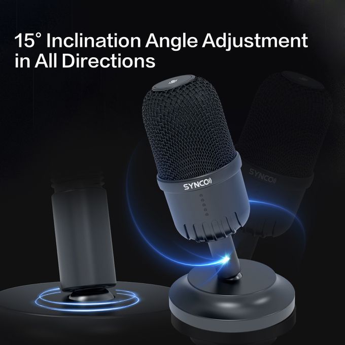 【15° Inclination In All Directions】Compatible with smartphone, laptop, PC, etc, When equipped with the tabletop stand, the mic can be adjusted to a 15° inclination angle in all directions to make sure the top end of the microphone facing the sound source at all time, enhancing sound pickup effect.