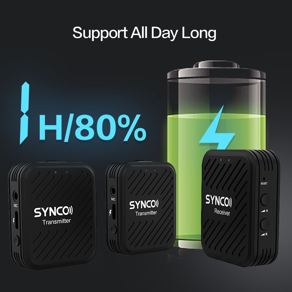 【Built-in rechargeablebattery】Built-in 400mAh rechargeable lithium battery, can work up to 5 hours after a full charge. Supports while recording, and transmitters and receiver at the same time via one cable. With indicator lights to show working status like , , pairing and low cut function.