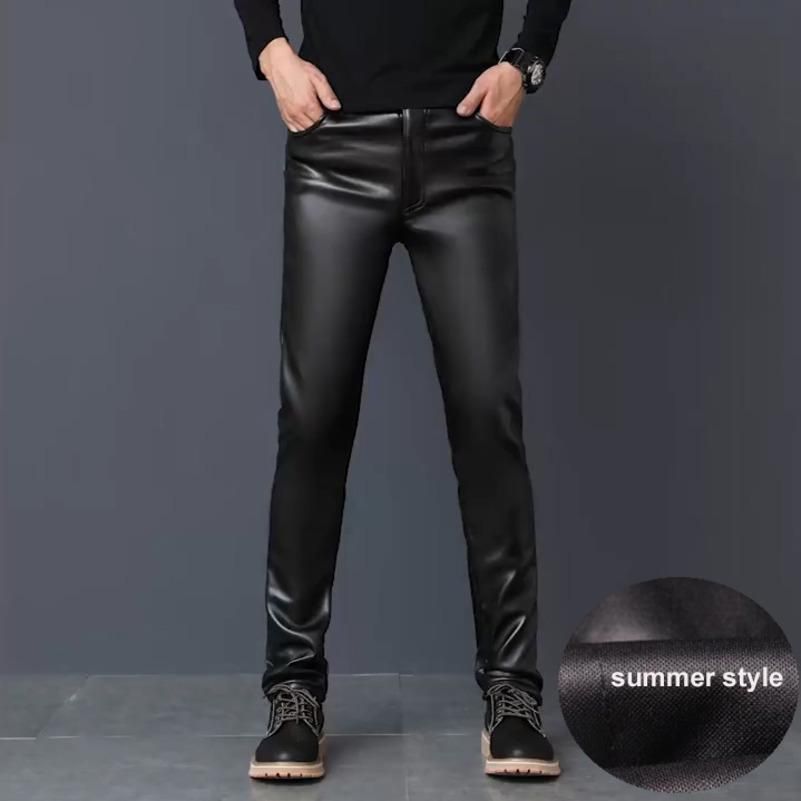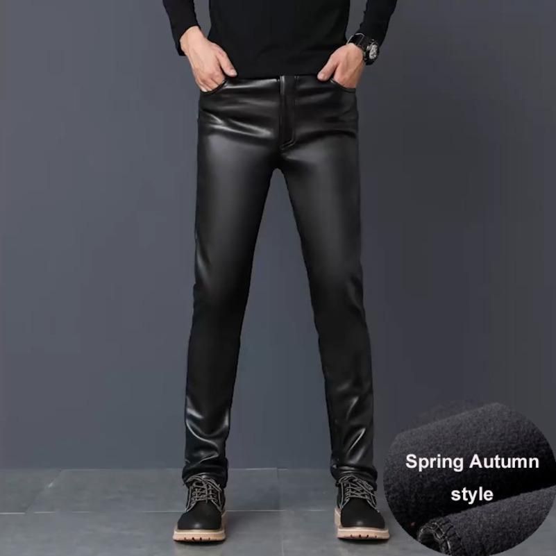 Pantalones pitillo de piel sintetica para hombre, pantalones elasticos largos ajustados de lana y cuero para motocicleta, para invierno, X9186