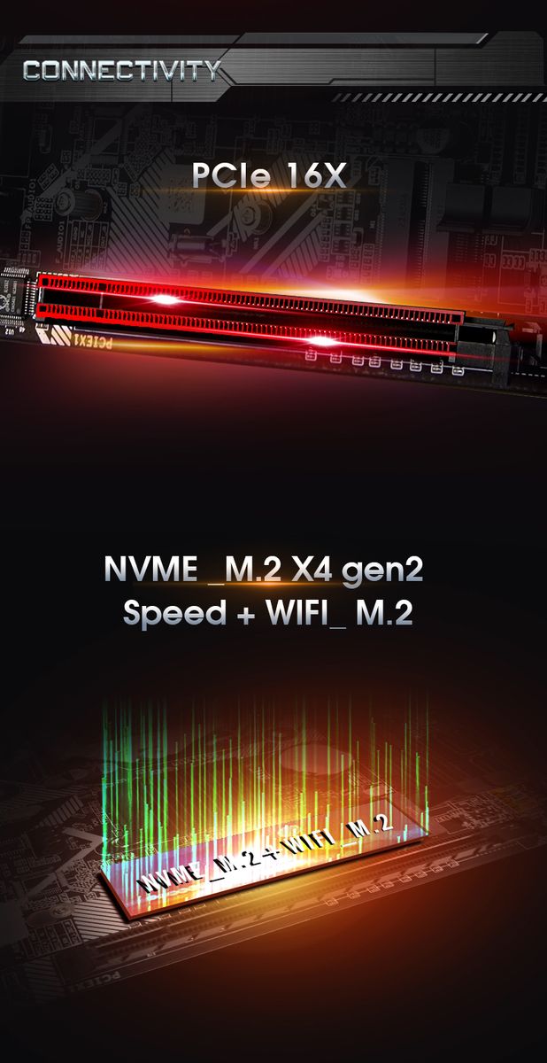 Versatile Slots: Equipped with a PCI-E 16X graphics card slot, supporting high-performance graphics cards for smooth graphics processing. The slots also include VGA, HD-Compatible, NVME_M.2, and WIFI_M.2, catering to different expansion needs.