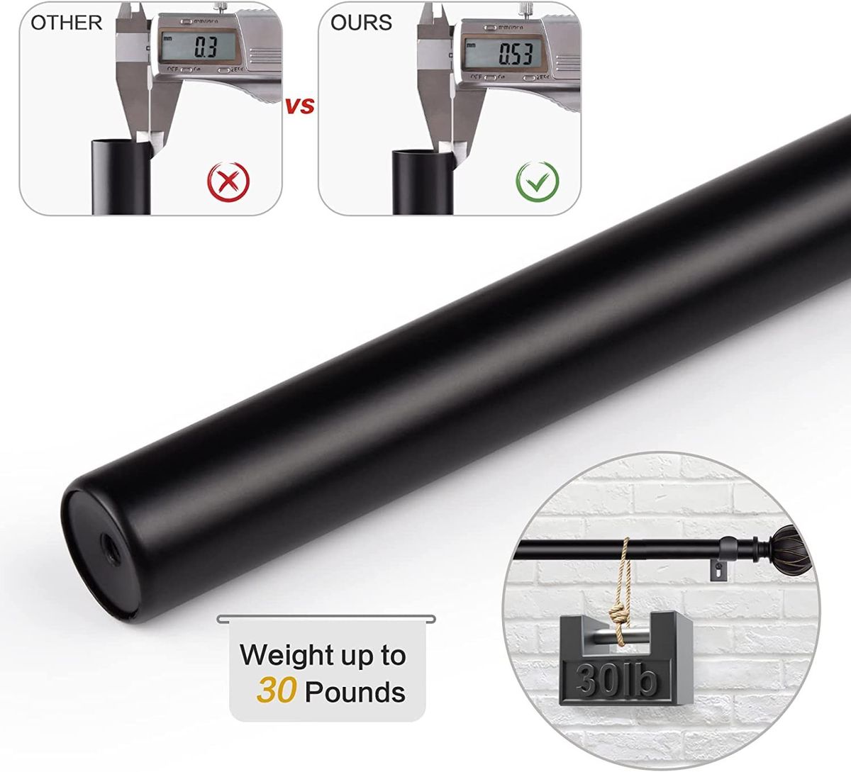 - Sturdy & Robust : 1 Inch diameter and 0.5 mm rod thickness heavy duty curtain rods weight capacity up to 30 pounds
