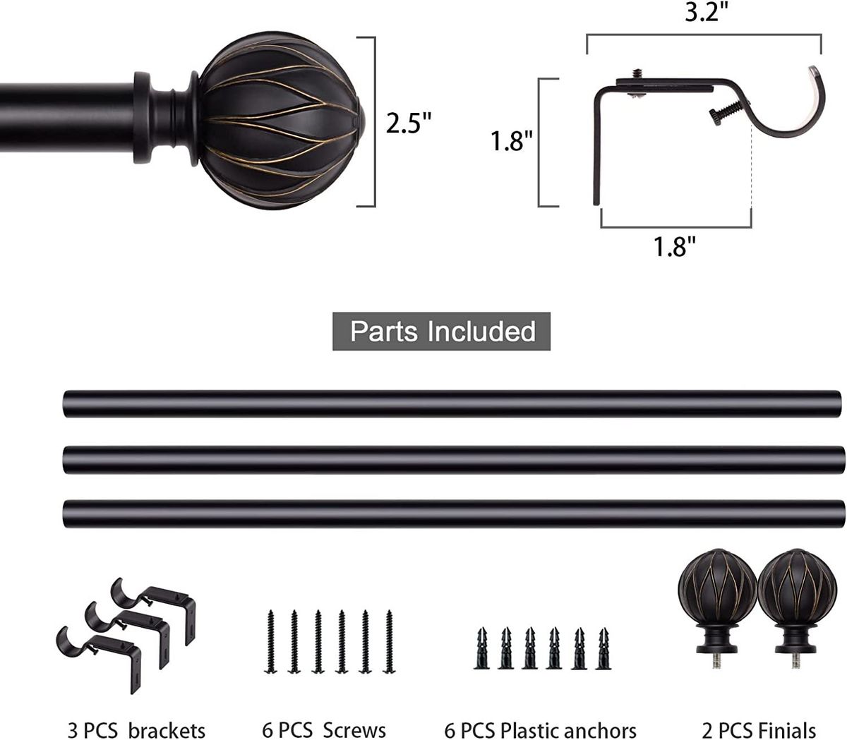 - Easy to Install: SZXIMU curtain rod comes with telescoping rods, finials, brackets, screws, anchors and instruction, you can easily mount it on the wall