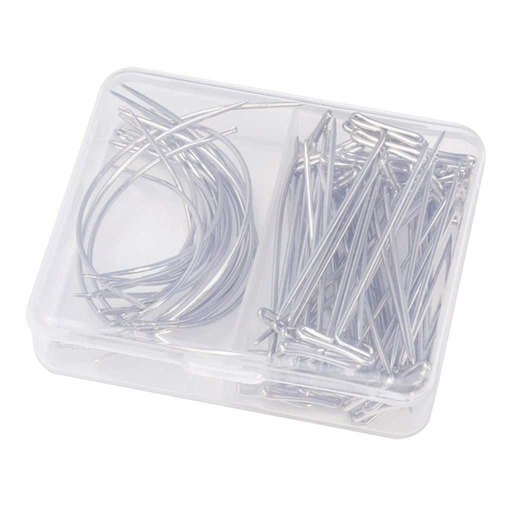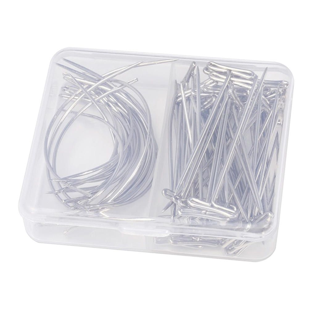 Pack of 20pcs C Type needles( 10pcs 2.5inch & 10pcs 3.5inch) and 50pcs T Type needlescome with a plastic box which is convenient for you to carry and store these T type and C type pinsMade high quality steel material, smooth surface, durable and not easy to get rustyGreat for mold fixing, wig knitting shaping tool. Also suitable for most sewing works: Embroidery, Darning, Quilting, Crafting, etcIdeal for sewing leather, blankets, thicker fabric, canvas, tarpaulin, etc, you can also make bags, repairs basket, dolls, shoes, sofa, furniture and more