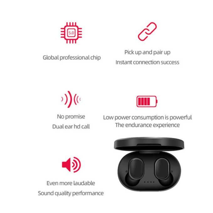 Main focusour store is updated daily. please pay more attention to our shop.We QC the products during shipment to ensure that the products are delivered to you with the best quality.@Golden snailNoise cancelling technique helps against loud and annoying noise. The controller was designed to control volume, select songs and take calls. Even wear for a long time also wont fatigue; they are less likely to fall out, and enjoy your music. Perfect stereo headphones with high quality drivers enables you experience natural clear and super enhanced bass sound. Detailed descriptionDustproof and waterproof:Dustproof and IPX5 waterproof, Double-eared split design, single and double ears are free to wear.Automatically pair:Will automatically pair, power on after taking out from the 280mAh charging box.One button control: One button control easily to turn on/off, play/pause/switch music, hands free calling to driving, working, meeting, running.Intelligent compatibility: support all Bluetooth mobile phone, tablet, notebook, QQ music, movies, etc., universal all mobile phone.Description:A New Generation of Bluetooth 5.0, faster and more stable.True wireless bluetooth headset, left and right channel seperation, Automatically connected, both ear can be used seperately.One to two connections, can be connected to two mobile phones at the same time.