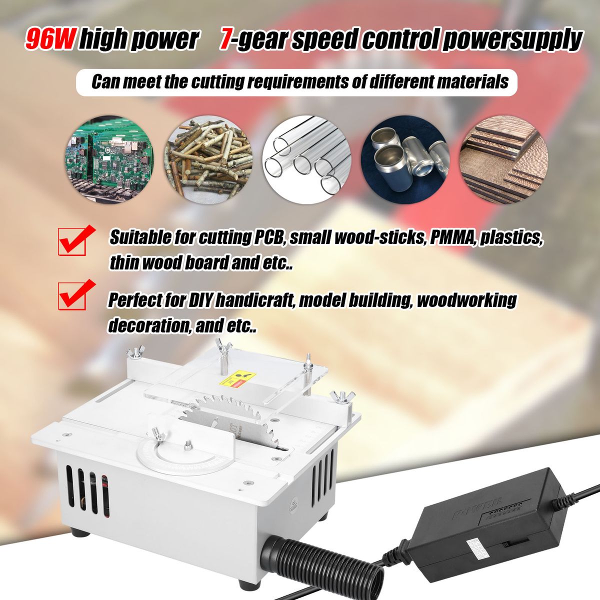 Comes with one sawblade, suitable for cutting PCB, small wood-sticks, PMMA, plastics, thin wood board and etc..