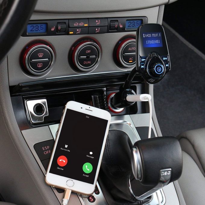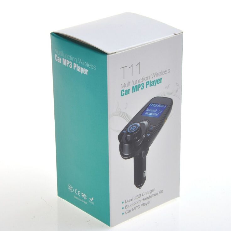 T11 Bluetooth Car Kit MP3 Player FM Transmitter Wireless Radio Adapter USB Charger Blue Backlight is a well-designed portable multi-media car FM transmitter that offers you a chance to indulge yourself in music when you are driving a car. It uses Bluetooth V5.0 + EDR and FM transmitter to stream music and calls from cellphone to your car stereo system. With an internal media player, it can play MP3 files from external TF card or USB flash drive. Built-in mic allows you to speak to callers without picking up the phone. Moreover, it offers dual 5V/2.1A USB outputs to charge your portable devices. Mini and light, it easily fits in the car.