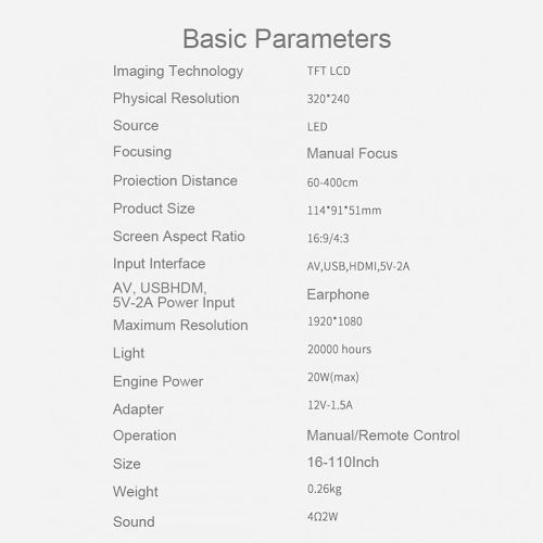 Title: T20 Mini Portable Projector 1080P USB HD LED Home Media Video Player Cinema Projector 320x240 Pixels Supports Easy To Carry