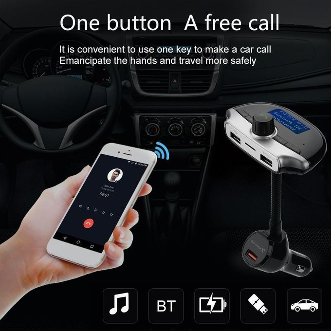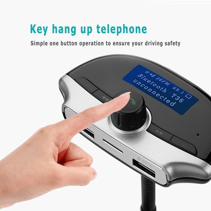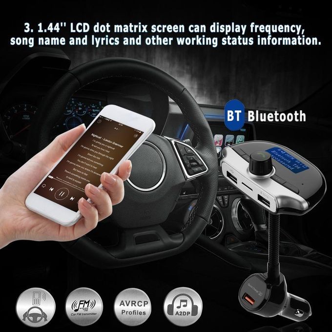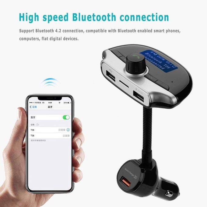 T36 Bluetooth Handsfree Car Kit FM Transmitter MP3 Music Player Quick Charge 3 USB Ports Charger Support