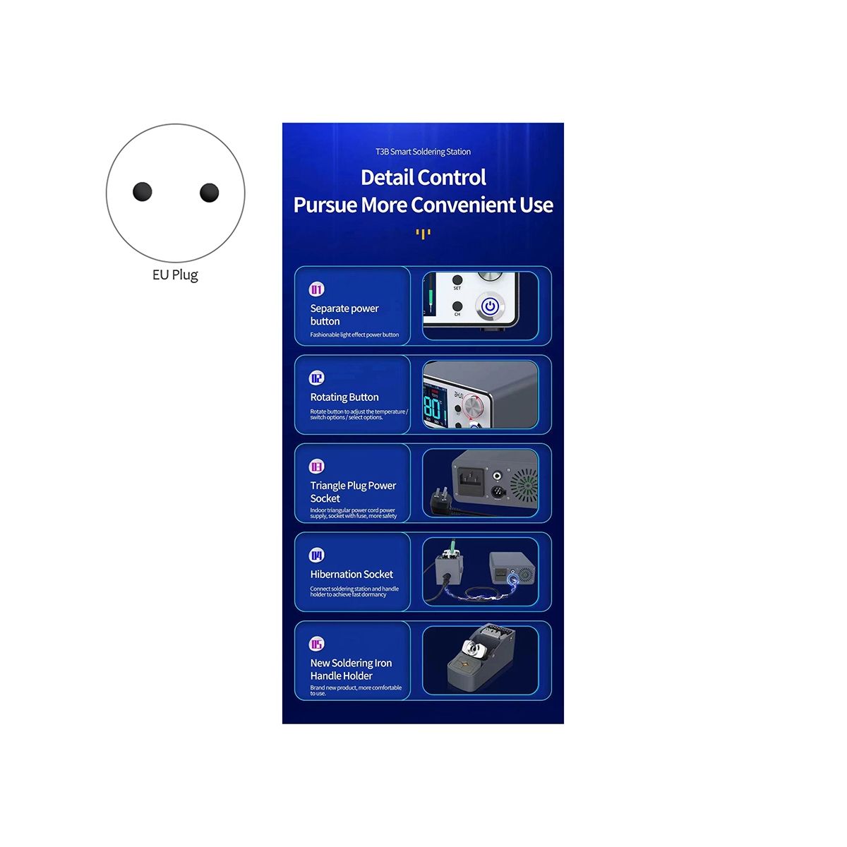 1 x T3B Intelligent Soldering Station Kit Only the above package content, other products are not included.