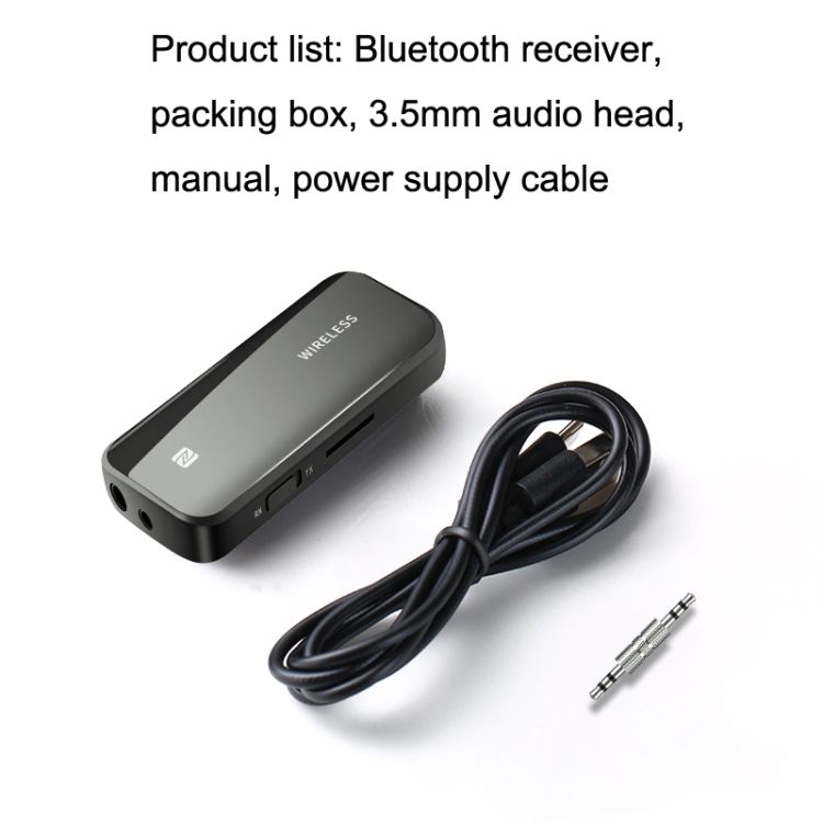 24. Product list: Bluetooth receiver, packing box, 3.5mm audio head, manual, power supply cable