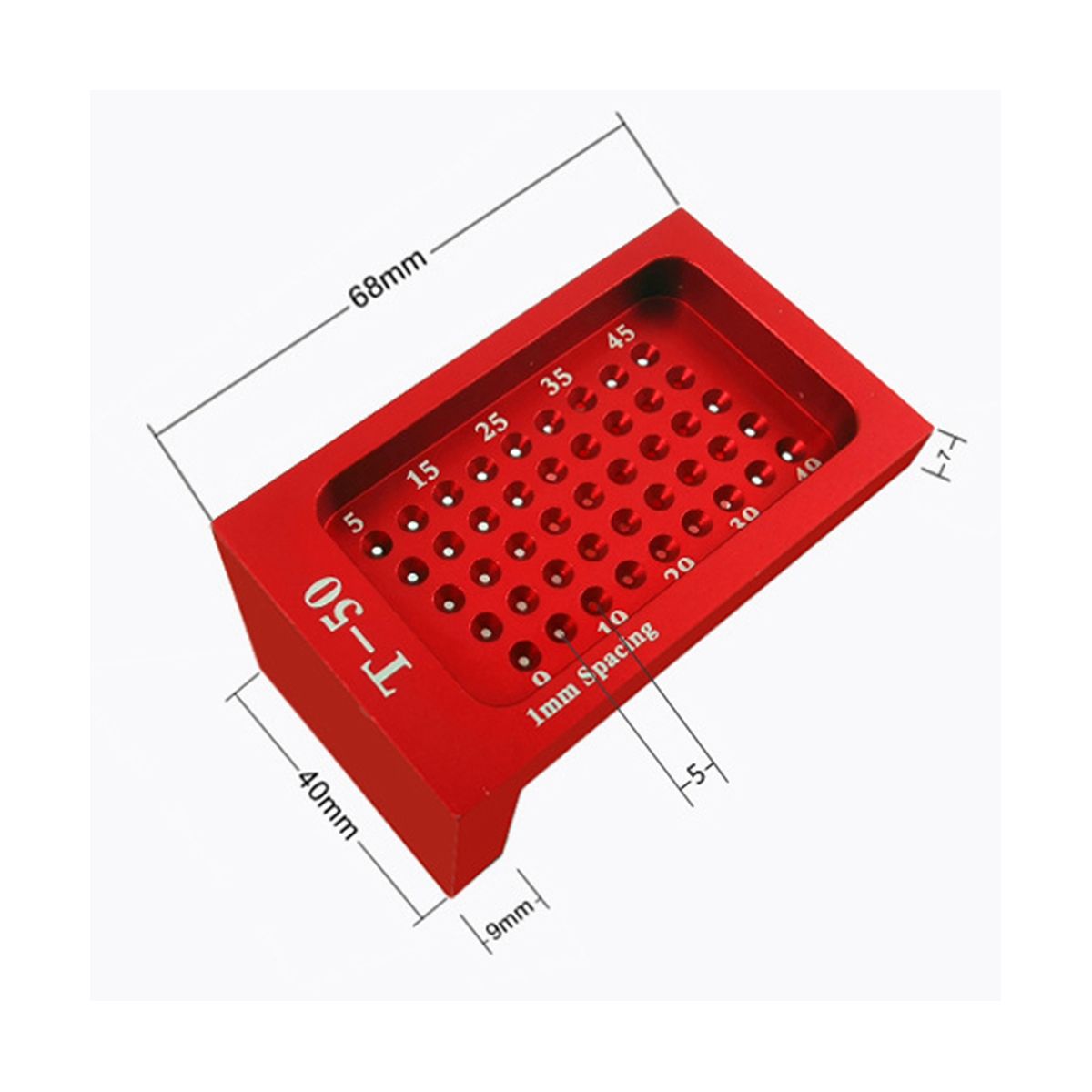 Each hole represents a millimeter, and the distance between the two holes is 5mm.