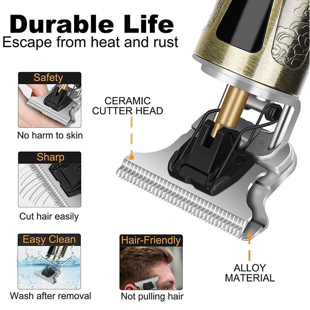 Feature:Compact size, portable, easy to carry on the road.Rechargeable: 1200mAh Li-Ion battery provides 120 minutes of boot time; Charges only 2 hours.Features constant speed technology; do not rinse or all through heavy, thick hair.Switch on with a light touch, no more non-slip metal buttons or switches, skeleton for easy line and edge lining.Applicable to men, women, antis people, babies, children, barber shop.Decant DEPacking includes1 X Hair Trimmer4 X Limit Comb1 X Power Cable1 X Cleaning Brush(Different types of packaging are different, see photos for details. Thanks)Decant DENotice: Notice:1.The actual color of the item may differ slightly from the images displayed on the website due to various factors such as the brightness of your monitor and the light.2.There may be a slight deviation in the measurement data.T9 Electric Hair Clipper High Power LCD Display Hair Salon Barber Scissors Professional Oil Cutter Blade Clippers BarberT9 Electric Hair Clipper High Power LCD Display Hair Salon Barber Scissors Professional Oil Cutter Blade Clippers Barber