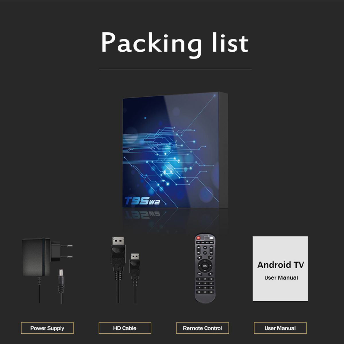 1 x T95W2 TV Box 1 x Adapter 1 x Remote Control 1 x HD Cable 1 x User Manual (English)