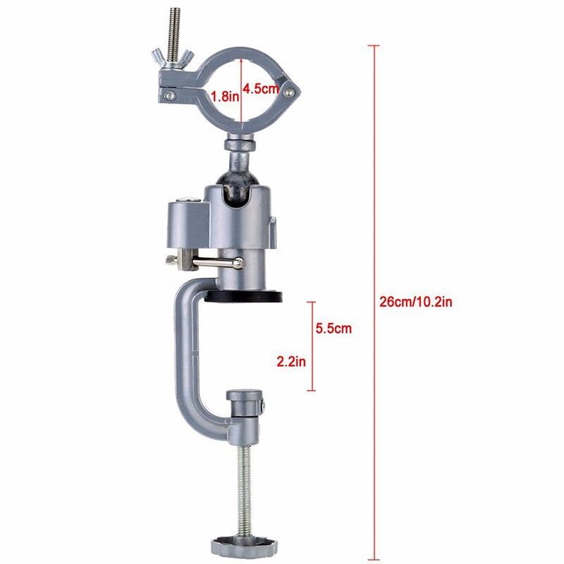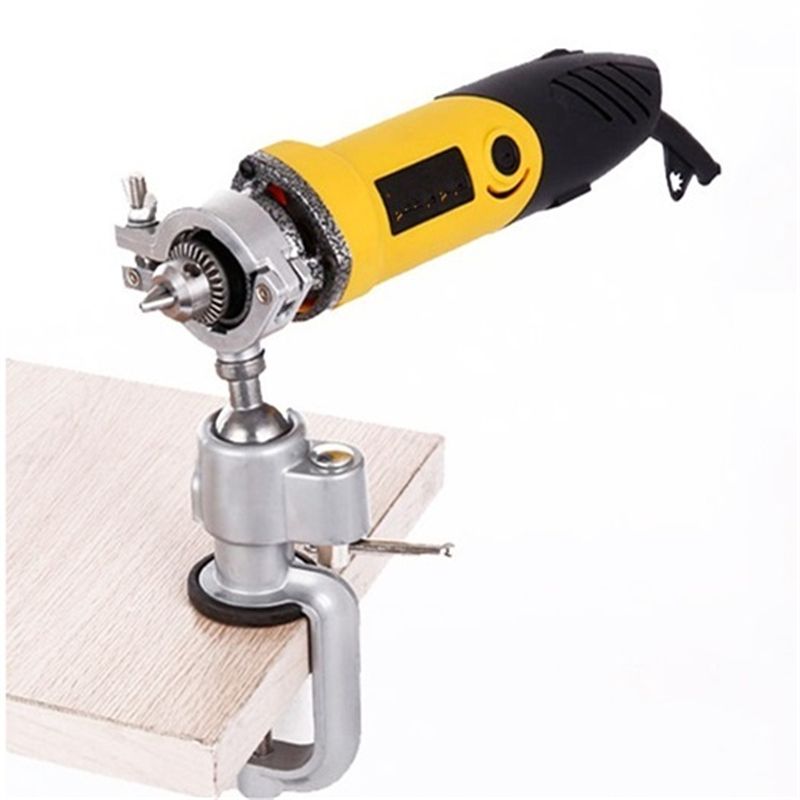 Our clamp-on grinder could give you a lot more precision when you use your electric hand drill to drill holes, it could be rotated in 360 degrees, and the its maximal table clamping capacity can reach 53mm(20.9inch), so it is very easy to set up the suitable angle for better use and easy to install on many kinds of tables or benches. It is perfect for holding 10mm electric hand drill, but using our included white inner gasket, it is also perfect for many other types of electric hand drills.