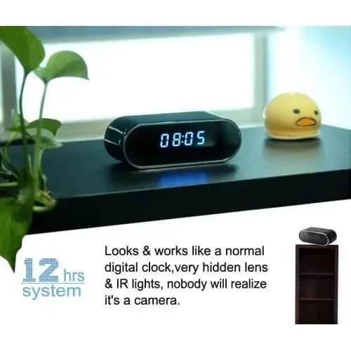 Hidden Camera Clock: This mini camera looks like a regular clock that can tell you the time. The lens of the mini camera is hidden under the glossy screen thus nobody will notice it.