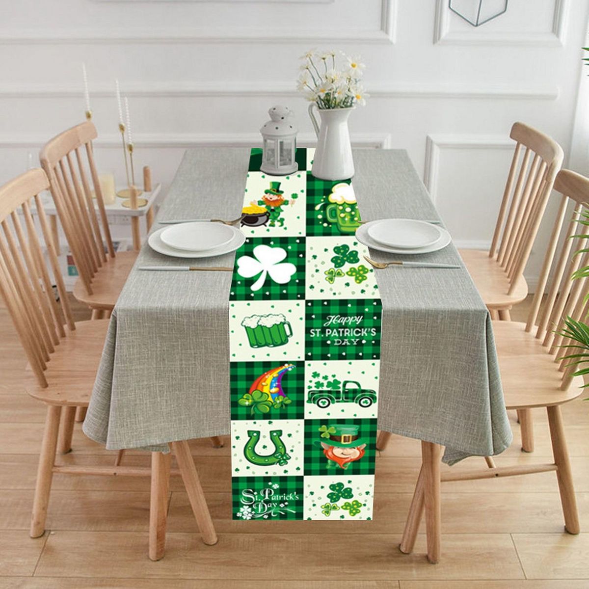 With this Patrick's Day style table runner for your Patrick's Day dining table decoration, your life will be modern and stylish. And they are wear-resistant and skid-resistant.