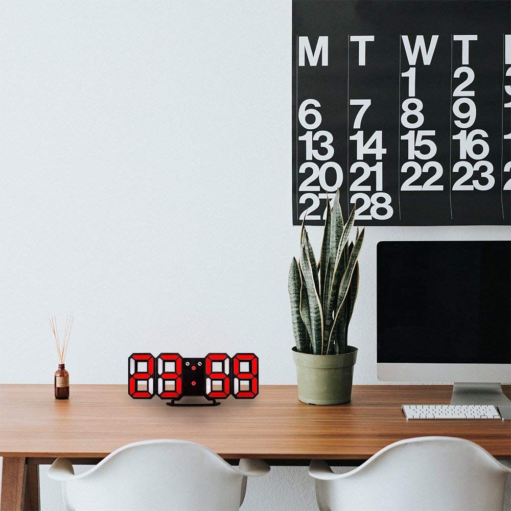 3D Modern Digital LED Table Desk Wall Alarm Clock