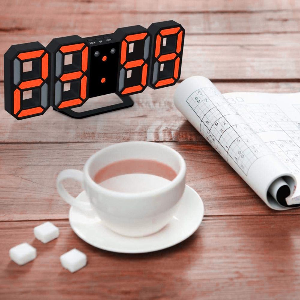A fashionable and easy-to-read clock with large LED “8888” digit display, Red LED lights.