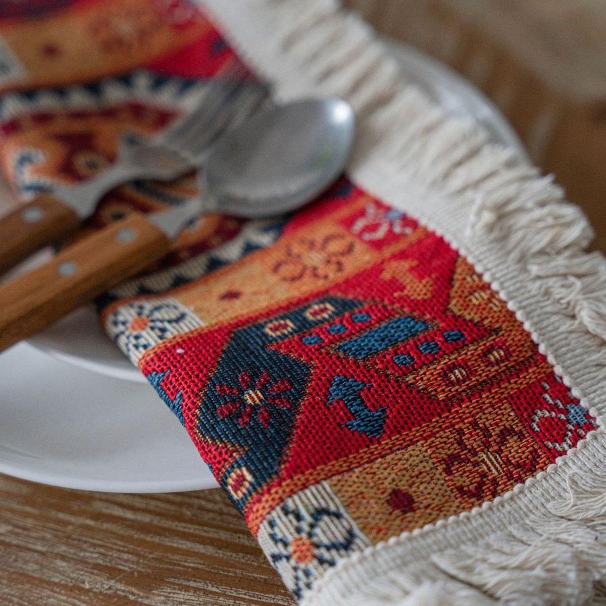 Featuring an American jacquard geometric design, this table runner is very delicate and beautiful with vibrant colours; it is easy to clean, very durable and can be used again and again.