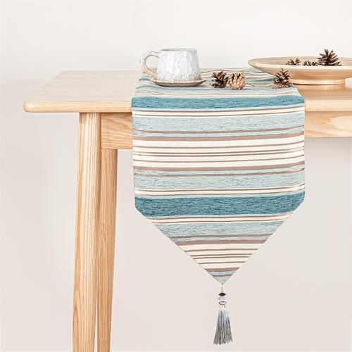 Table Runners Colorful Stripes With Tassels Chenille Canvas Fabric Wedding Tablecloth For Outdoor Home Decor.-table Runner-table Runner Stripecolorful Table Runners