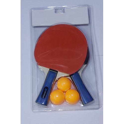 Includes 2 table tennis rackets and 3 ping pong balls.