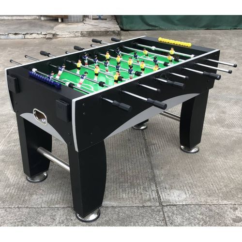 The table is manufactured in steel with a polyester paint finish. The players are made from cast aluminum and the handles are made of wood. High-quality, hardwearing materials, mean this table is ready for intense play and a lifetime of friendly competition.A foosball table that stands out thanks to thoughtful design and durable materials.