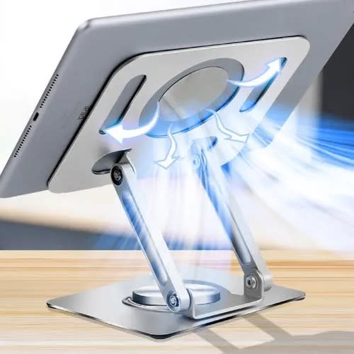 The Innovative Laptop StandSleek adjustable laptop stand made of aluminium alloy with 6 angles of adjustments. Lightweight durable design allows laptop device to breathe away from the surface. It improves air circulation around the laptop device. Multi angle adjustments reduces back aches and tension associated with incorrect sitting posture when using the laptop. The laptop stand provides a better experience for you and better conditions for your laptop. It just makes carrying easy and holds your laptop firm and steady. It's not a desk but bring losts of convenience for your life.