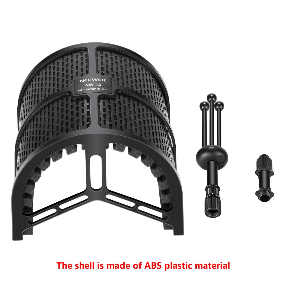 Neewer pop filter shield can effectively diffuses acoustic waves surrounding the microphone and keep the sound from bouncing back towards the microphone, controlling reflected soundwaves.Unwanted outside audio waves and vibrations, also known as noise and interference, are shielded away from the recording area while your voice finds a clear path to your microphone.Specifications: