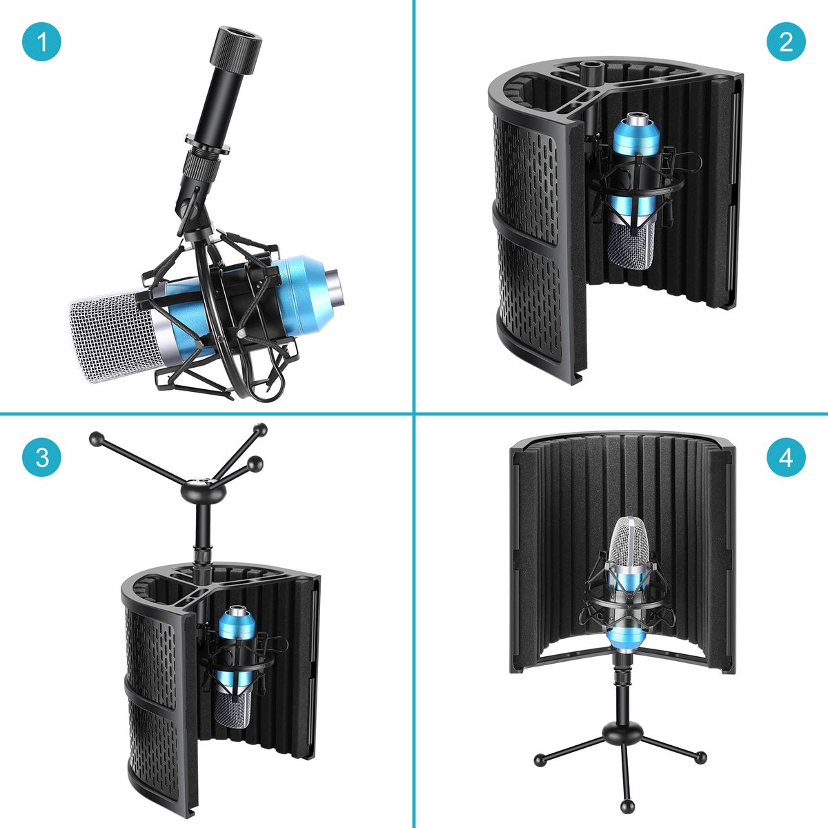 Neewer Tabletop Compact Microphone Isolation Shield with Tripod StandNOTE: Microphone, Shock Mount and Headset are NOT included.