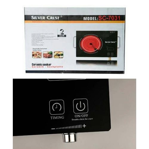 Silver Crest SC-7031 Touch Control Waterproof Multifunction Electric Ceramic Stove Portable Counter top Stove Burner. The 2000W piece helps you in the kitchen like an extra Partner. This piece is your Other Hand in Helping kitchen. This device is suitable for a variety of dishes, cooking roasting and steaming. It can perform various functions, multi-function plate with power heating function rated 25 and Volume 0.083m3.