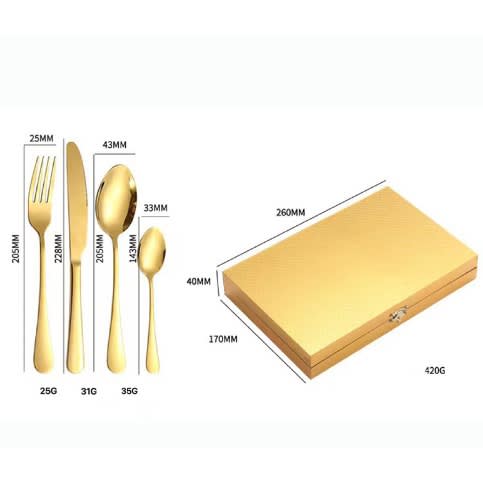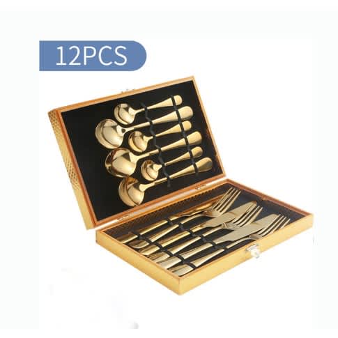 Buy Tableware- 410 Stainless Steel- 12 pcs Set-wooden Gold Gift Box- Gold in Nigeria