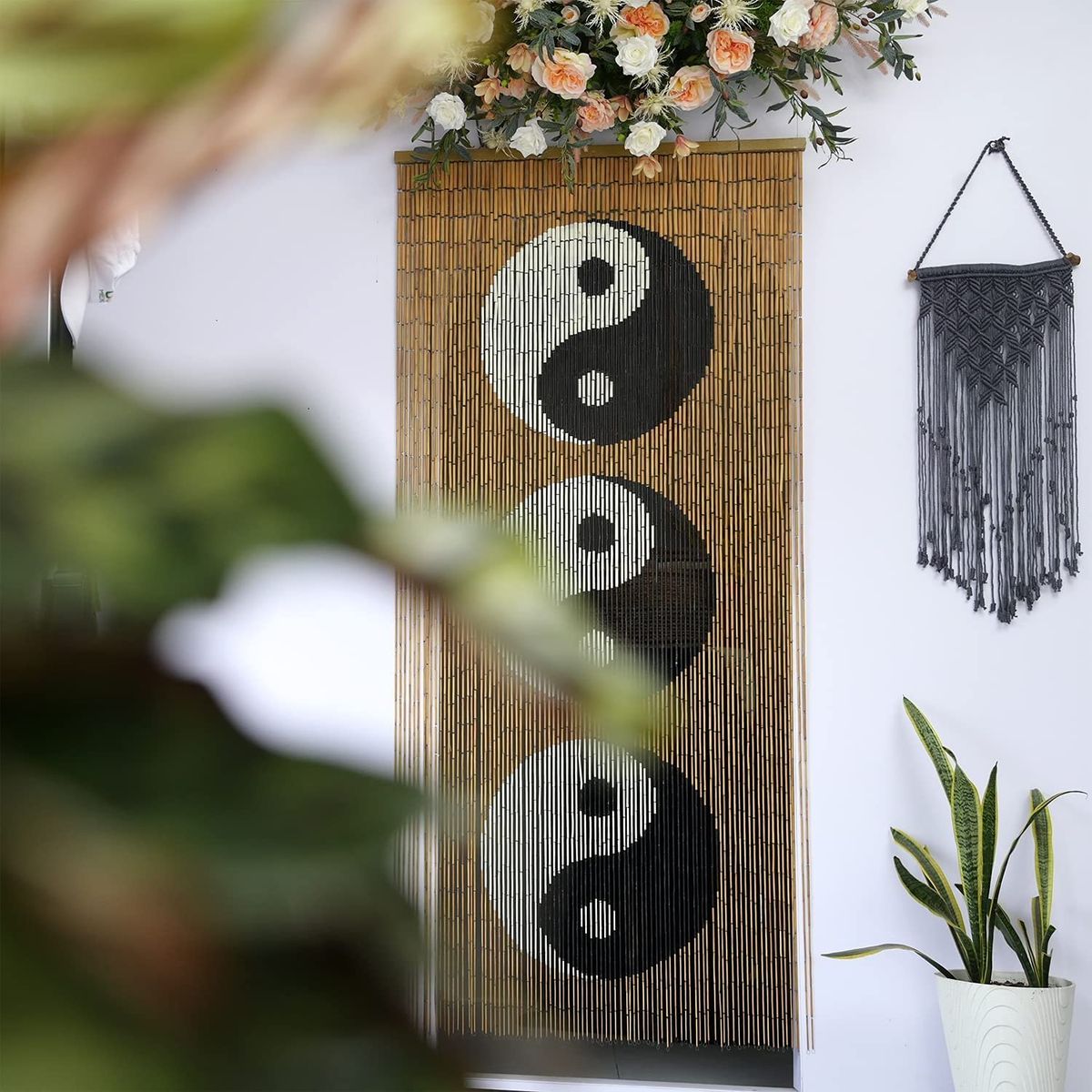 - ☘ A MULTI FUNCTIONAL BAMBOO CURTAIN : Use as a closet curtain, bead curtain for doorway, hanging beads for doorways, door decoration, bead door curtain, hallway curtain, partition, boho room divider, window treatment or as wall art. It creates air circulation in a house, between rooms. It adds boho charm and new look to your house.