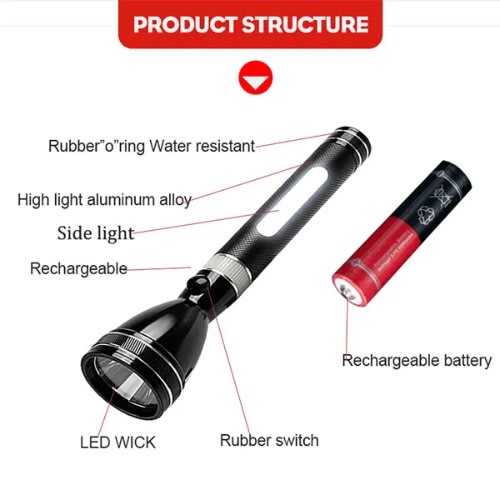 Buy Tactical Aluminum Waterproof Rechargeable LED Torch Flashlight in Nigeria