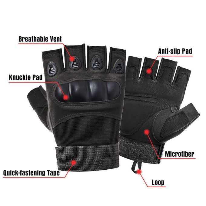 Features:Material: Made of durable and breathable material, comfortable to wear.Protective: The thickened palm protective pad and knuckle pad strengthen the grip and protect hands from harm.Breathable: Designed with vents on the fingers, comfortable to use in hot weather.Anti-slip Design: Effectively provide your hands a better grip and make your work efficiently.Adjustable: Quick-fastening tapes on the wrist can adjust the tightness according to your need. Occasions: Suitable for climbing, cycling, motorcycling, and other outdoor activities.