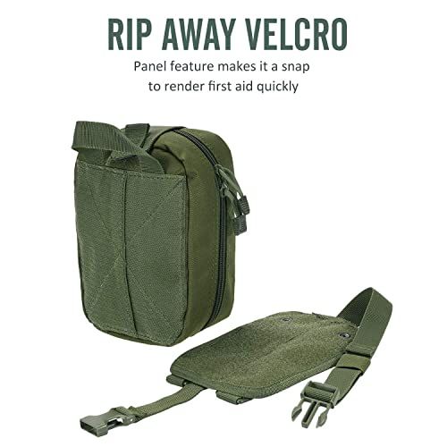 Details: The TANSOLE Tatial MOLLE Rip Away First Aid Medial Pouh is a roomy, organized MOLLE ompatible medial pouh that is designed for rapid removal. MOLLE integration allows for ustomization and the ability to attah to other MOLLE gear suh as a bakpak or tatial vest. However, medial bag is attahed to a large Velro panel and geared with a strong pull handle for rapid removal in ase of an emergeny. It also ontains a large outside strap with bukle that inhes down to ompress the pouh even further. Equipped with 3 roomy ompartments, eah ontains multiple, spaious pokets and strong elasti loops for supplies and medial instruments. The top ompartment features a Velro strap to seure large items. The fold out zippered mesh ompartment an be used to store small supplies suh as band-aids and alohol wipes. This first aid pouh also ontains D rings as additional attahment points and a 2 inh Velro path area aross the front for your first aid or Morale path This EMT pouh an serve many purposes that requires you arry and organize supplies. Beside the obvious hoie of organizing your first aid supplies, EMT pouh an be used for: everyday arry gear, fishing supplies, amping supplies, ation amera bag, shool supplies, or any other tasks that you an think of. Features: MOLLE webbing Tri-fold design. Multiple pokets and elasti loops for storage. Double zipper losure. Two inh path area aross front of pouh. Rip away hook bak with loop panel seure with quik release bukle Two D-rings on the bak for shoulder strap. Size:8" H x 6" W x4"