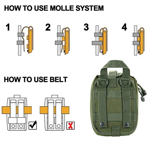 - Strong webbing belt loop on rear, deadly hard wearing & heavy duty. MOLLE attahment straps to be worn on belt, vest or pak et tatial platform,or put in your ar as ar first aid kit bag.