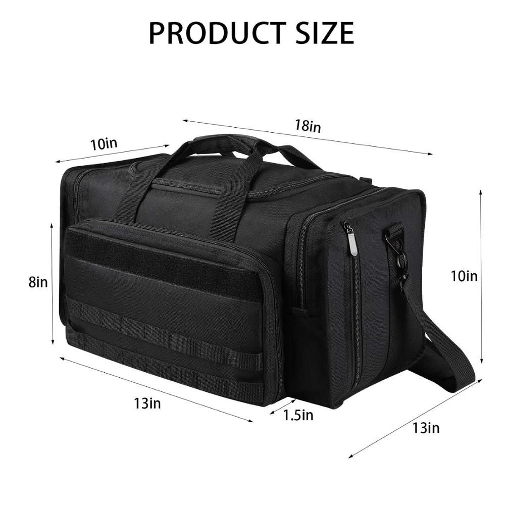 【Spacious Range Bag Shooting】Large range bag dimensions: 18"x13"x10" (WxDxH), multiple compartments give you lots of space to store your gear. This gun range bag could carry your , s, magazines, ammo, ear guards , , spotting scope, shooting glaes, hearing protection and anything else you need to bring to the range. Please note the dimension before order.