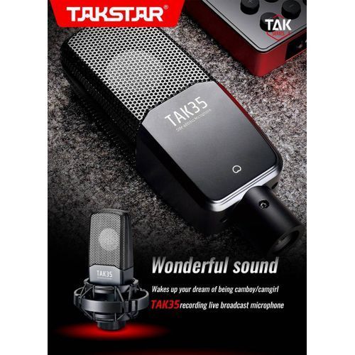 TAKSTAR TAK35 Professional Recording Microphone Condenser Cardioid Mic with Metal Windscreen Shock Mount for Network Karaoke Live Broadcast Vocal Recording