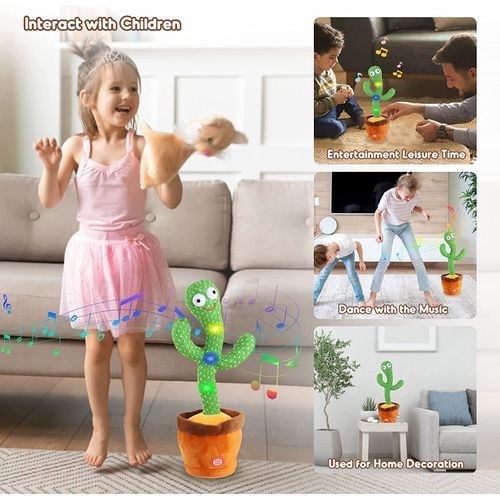 - Dancing Cactus Toys: The dancing cactus plush toy that can dance, can shine, record, speak, sing and dance. This is the best birthday present for children. You can also use the electric dancing cactus as a home decoration. Cheerful music and dancing are very suitable for creating a pleasant atmosphere and hosting parties.