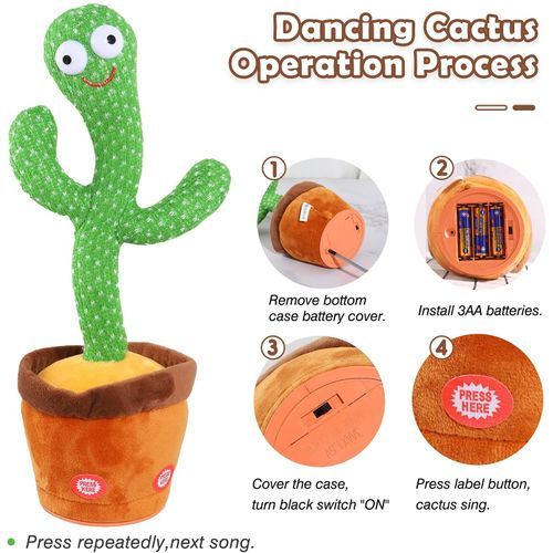 - Singing Sunny Cactus Toys: Dancing talking cactus toy has 120 English songs,and the cactus plush toy will dance with the music.Talking cactus toy can record what you say and repeat what you say,The sound is processed which is very funny and interesting,promote family atmosphere.