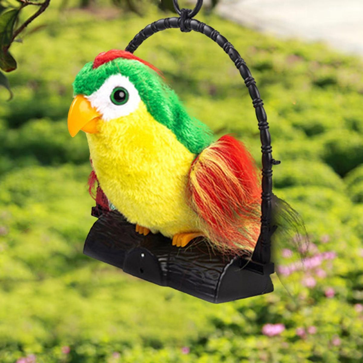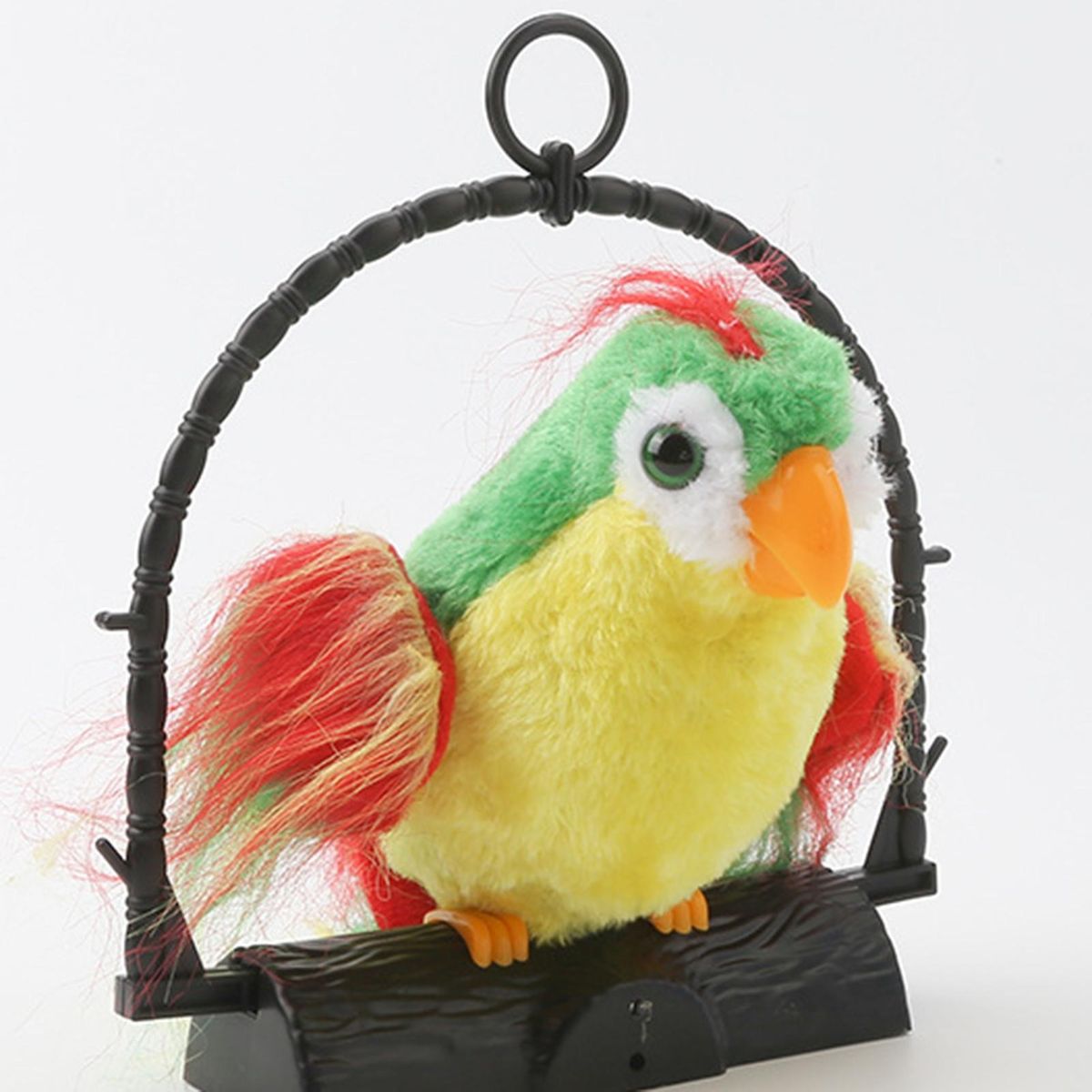 The doll is suitable for home, garden, display window, office, etc. Each parrot sits on a base. It repeats everything happily, say twice, in its own parrot accent.