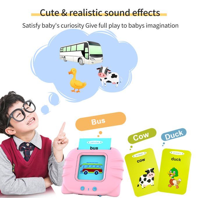 Education Toys Audible Card Reader - This talking flash card educational toy including a card reader and 112 double-sided flash cards covering subjects like animals, persons, transports, fruits, vegetables, nature, persons, jobs and shapes. Ideal study and learning tool for toddler.