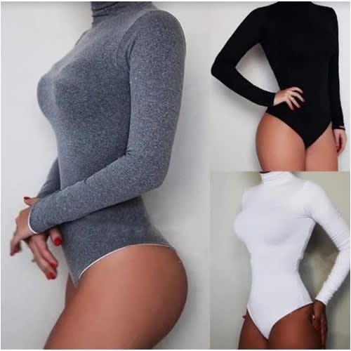 Excellent High Quality Sexy Turtleneck Ladies Solid Black Color Bodysuit. Casual Stretch Attractive All Occasions Events Wear. Strong Long Lasting Durable. High Compression Level. Breathable Sustainable Comfortable Washable. Easy to Wash. Machine or Hand Wash With Soap or Detergent. Non-Decoration.
