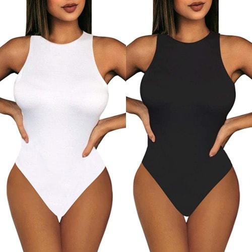 Women Turtleneck Long Sleeve Bodysuit - Black & White