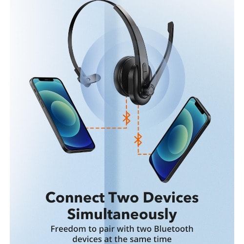 FOR TOTAL CONVENIENCE, THESE BLUETOOTH HEADPHONES CAN BE PAIRED WITH TWO BLUETOOTH DEVICES AT THE SAME TIME. SO WHEN A CALL COMES IN, YOUR HEADPHONES KNOW WHICH DEVICE IS RINGING AND CONNECTS TO THE RIGHT ONE AUTOMATICALLY.
