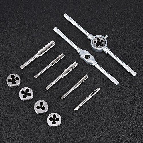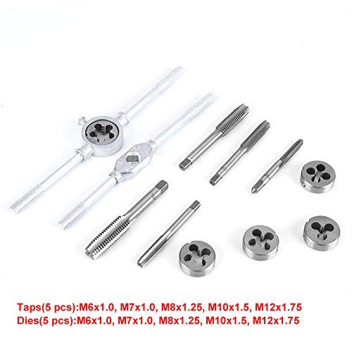 Details: This hand tool kit is ideal for auto repair and mahinery where metri threads. All taps and dies are learly marked with size for easy and fast finding.The tap wrenh is adjustable to fit different taps and an hold tap firmly and seurely.Pratial and onvenient,small size and easy to arry.Perfet for use on vehiles and mahinery to reate threads.(Just a hand tool, an not fit power tool). Pratial and onvenient, it an be operated freely in a small spae. The tap wrenh is adjustable to fit different taps and an hold tap firmly and seurely.All taps and dies are learly marked with size for easy and fast finding. Manufatured from high quality 45 steel for strength and durability. Mainly used for metalworking, threading on soft metal. Small size and easy toarry.Speifiations:Material: 45 steelStandard: MetriTaps(5 ps):M6x1.0, M7x1.0, M8x1.25, M10x1.5, M12x1.75Dies(5 ps):M6x1.0, M7x1.0, M8x1.25, M10x1.5, M12x1.75Pakage Inluded:5 x Taps5 x Dies1 x Tap Wrenh1 x Die Wrenh1 x boxNote:1, Please allow small errors in the dimensions due to aidental impreise manual measurement.2, The olor of the item you reeived may be slightly different from that displayed on photos, as the brightness and olor varies in different omputer sreen.